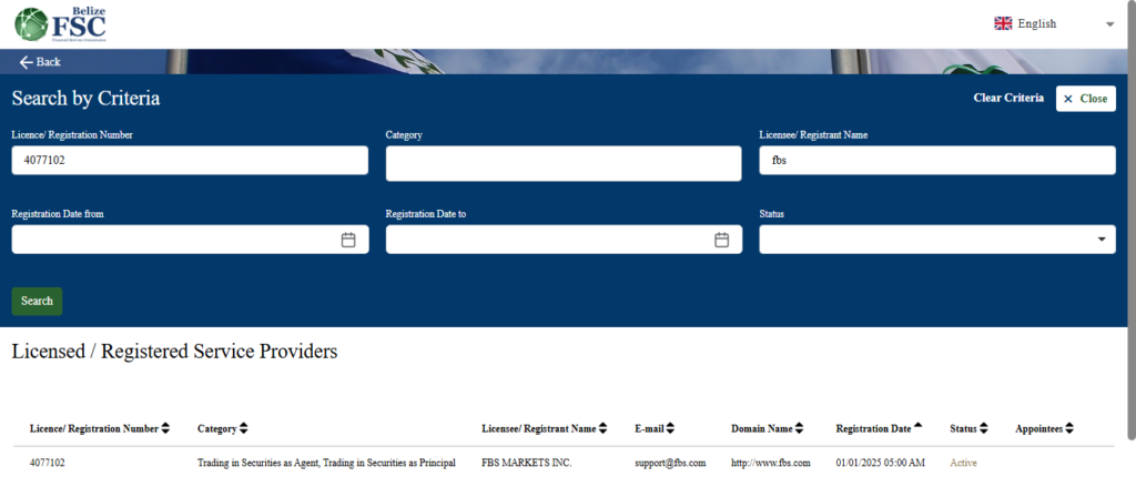 • International Entity (FBS Markets Inc.): FSC Belize (License number 4077102)