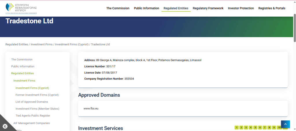 • EU Entity (Tradestone Ltd): Regulated by CySEC (License 331/17)
